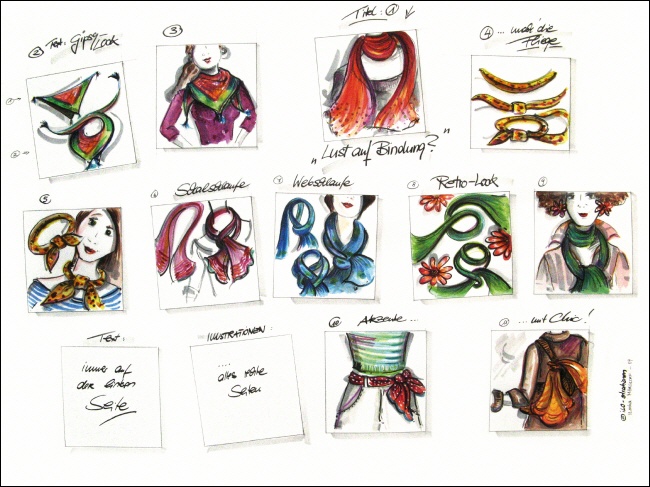 + eine kundenspezifische und zielgruppenorientierte Marktanalyse + die Entwicklung von Trendthemen + die Erstellung des Farbkonzepts + Designentwicklung + Coloration + Produktionsvorbereitung und Begleitung + Präsentation auf Messen, bei Kunden und Vertretertagungen